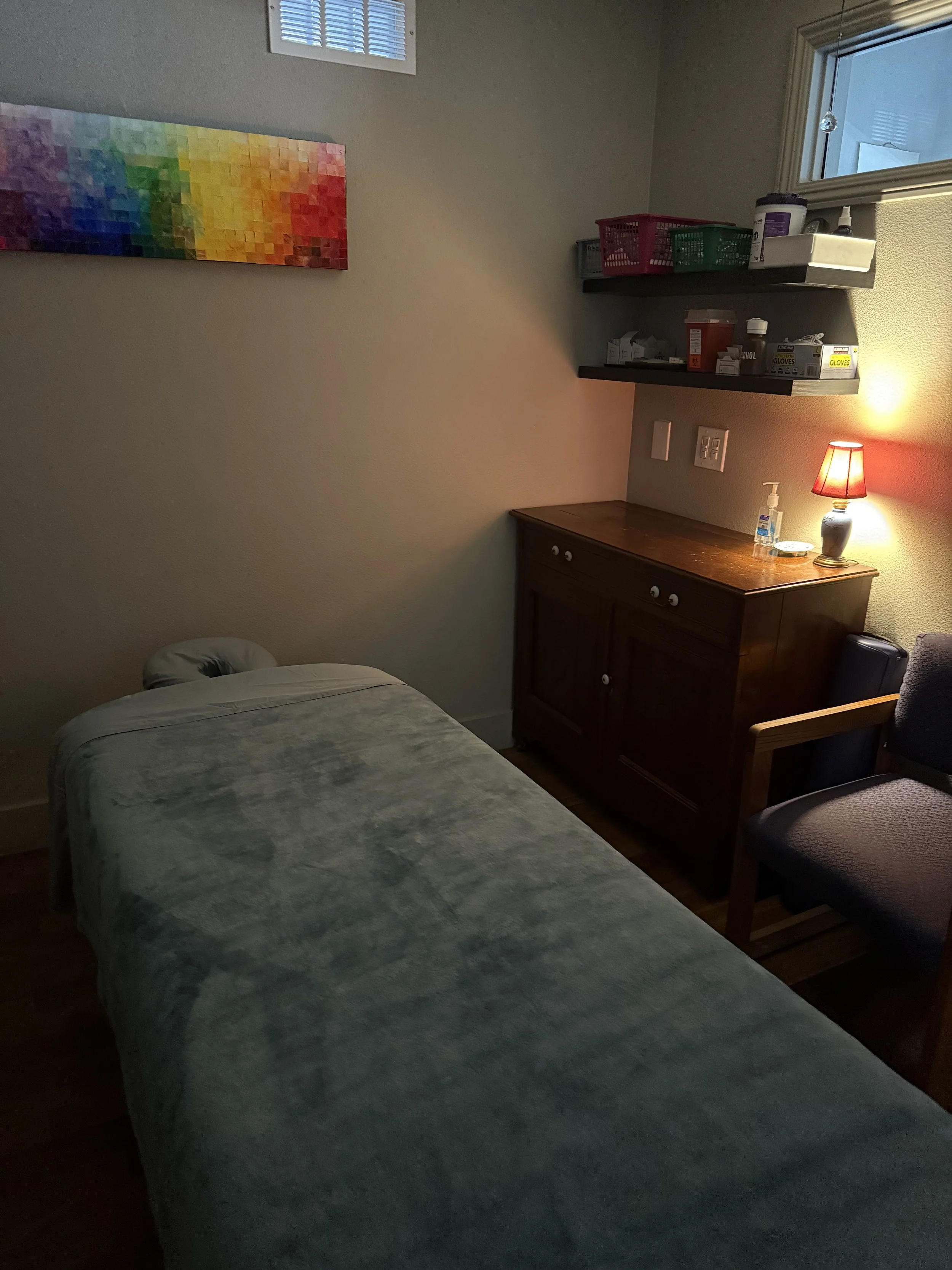The clinic offers a peaceful environment to help you feel as comfortable as possible during your session. There is free parking behind the clinic. An accessible entrance is located at the front of the building.