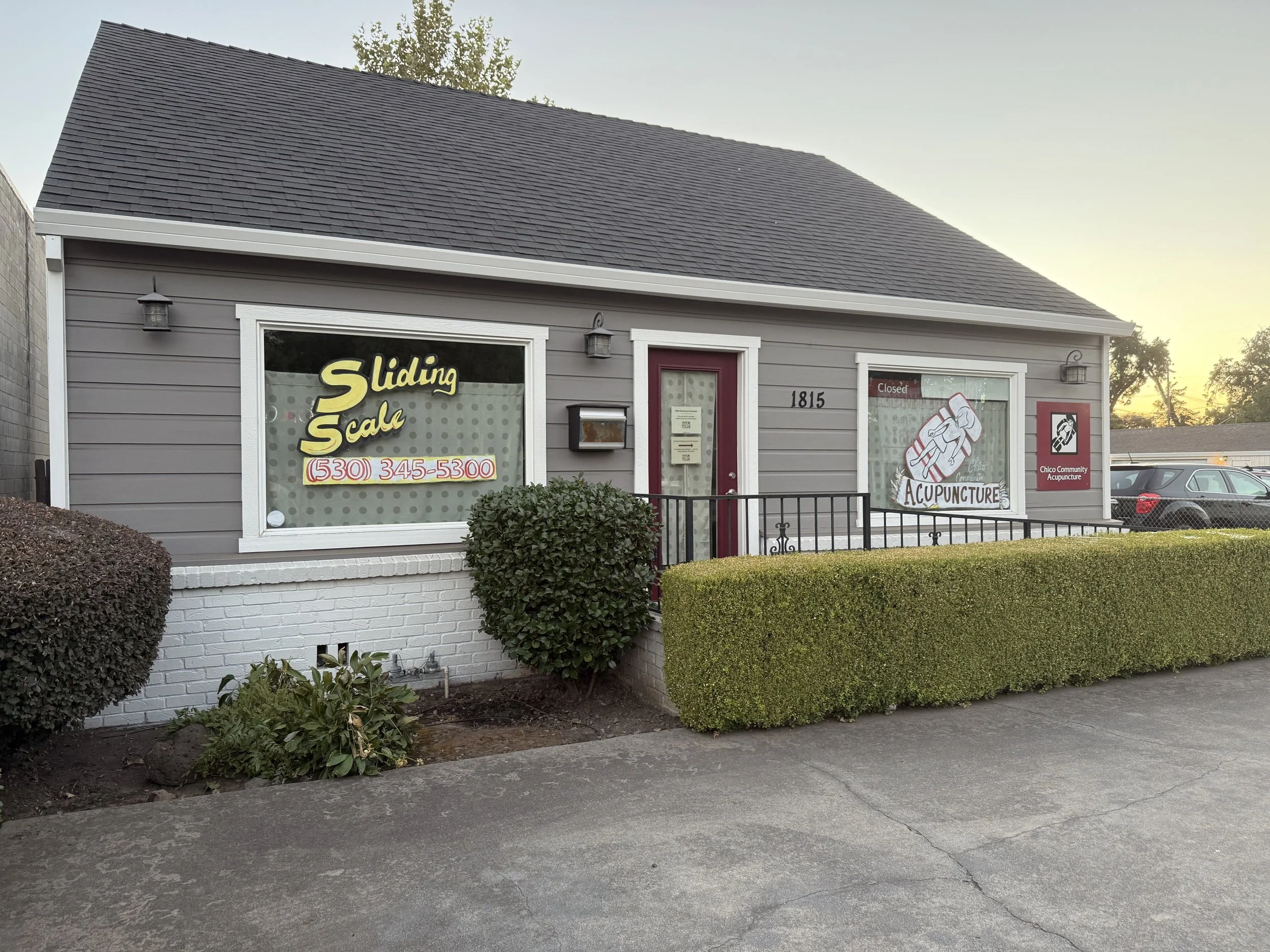 All appointments take place at 1815 Mangrove Ave inside Chico Community Acupuncture.